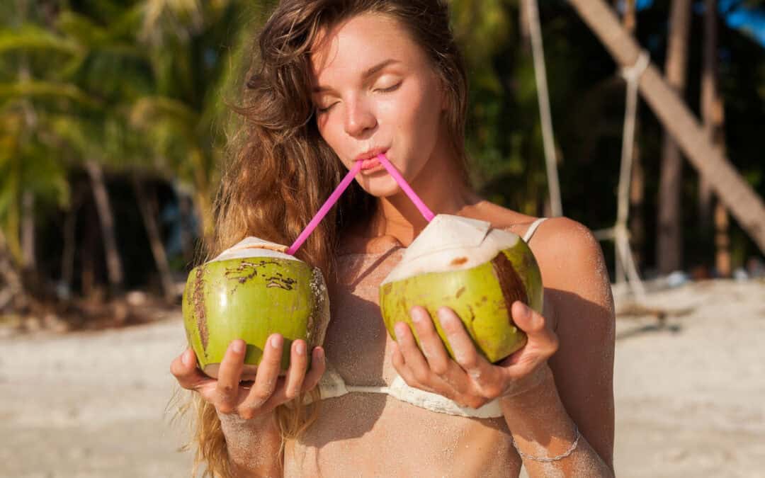 As bebidas esportivas são projetadas para repor líquidos, eletrólitos (sódio e potássio) e energia perdida através da transpiração. 😅 A água de coco contém todos esses componentes de reposição, mas em quantidades variáveis.